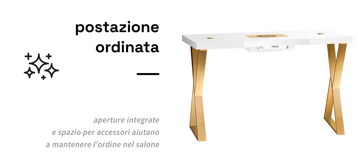 Il banco cosmetico Momo 04 è una combinazione di eleganza minimalista e soluzioni pratiche, progettata pensando agli utenti più esigenti. L 'ampia superficie di lavoro garantisce il comfort durante lo svolgimento delle attività quotidiane nel salone di bellezza.