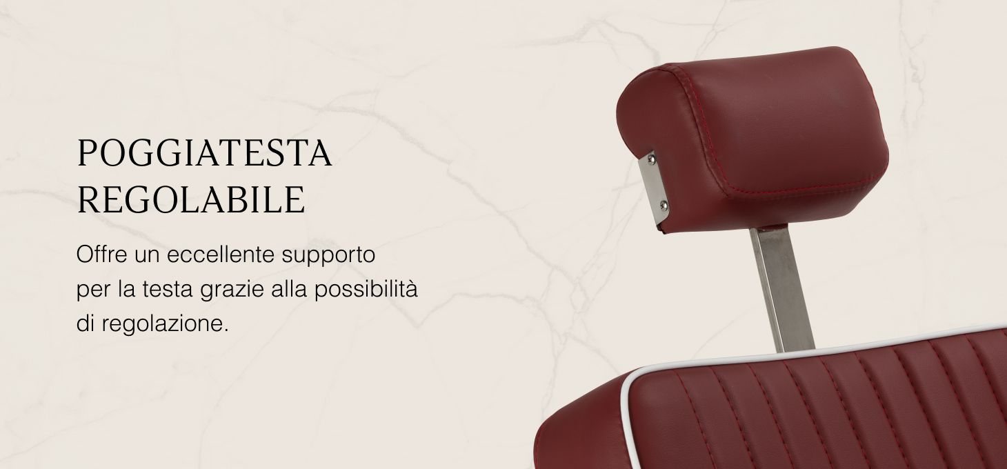 La robusta struttura della base garantisce stabilità ed elevato comfort. Il sedile è imbottito di schiuma resistente alla deformazione e rivestito di morbida pelle sintetica opaca, che unisce durata e comfort. I materiali utilizzati per la finitura sono resistenti all'umidità, durevoli e facili da pulire, rendendo la sedia perfetta per l'uso quotidiano. Le cuciture eleganti e il rivestimento nei toni del rosso le conferiscono un carattere unico, integrandosi perfettamente con l'arredamento dei moderni barbieri.