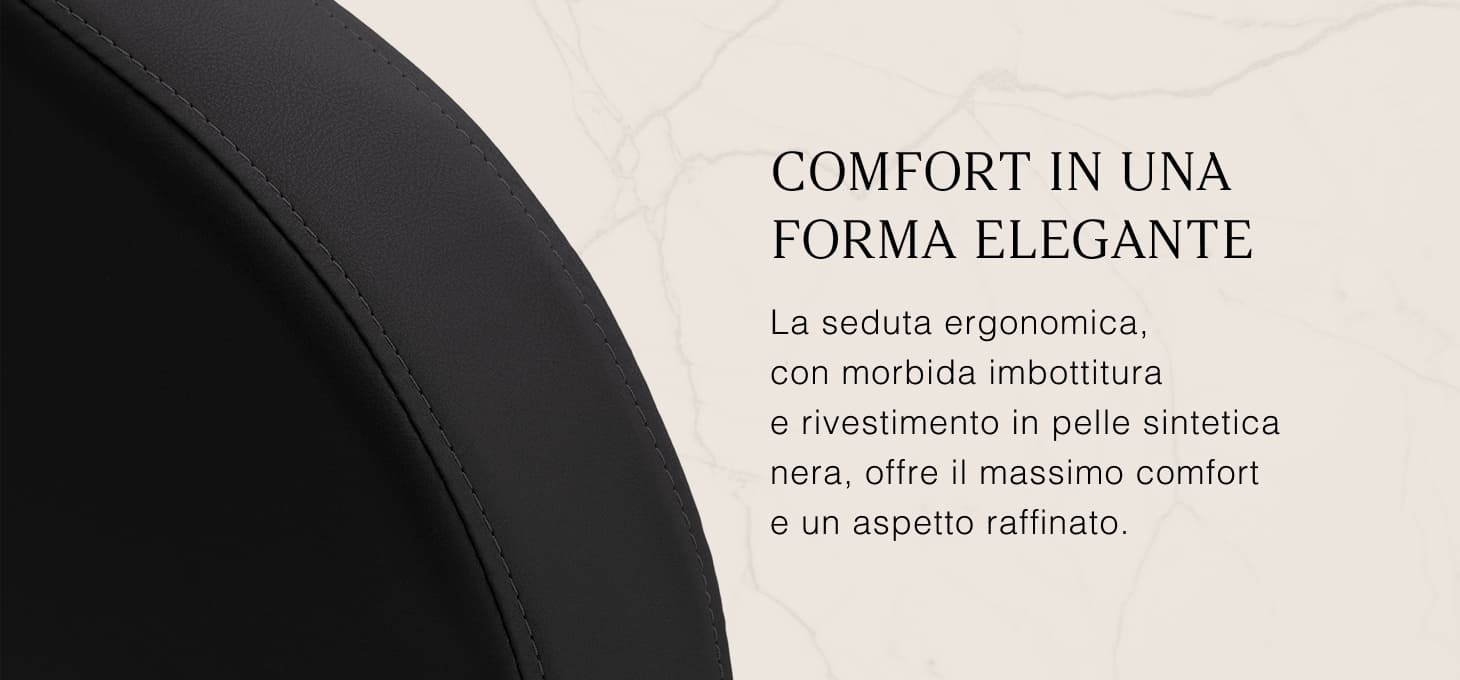 Il lavatesta Gabbiano Elda combina comfort, estetica e funzionalità, rispondendo perfettamente alle esigenze dei moderni saloni di parrucchieri. La seduta ben profilata, riempita di schiuma resistente e flessibile, garantisce un supporto lombare stabile e un elevato comfort anche durante i trattamenti più lunghi. I braccioli consentono un corretto posizionamento delle spalle, favorendo il relax del cliente. Il rivestimento, realizzato in pelle sintetica piacevole al tatto in un'elegante tonalità di nero, è altamente resistente, facile da pulire e presenta una finitura estetica che sottolinea il carattere professionale dell'arredo. Il set comprende una serie completa di accessori in tonalità di nero, tra cui un rubinetto, un soffione doccia e tubi flessibili coordinati, che forniscono un set completo di strumenti per il lavoro.