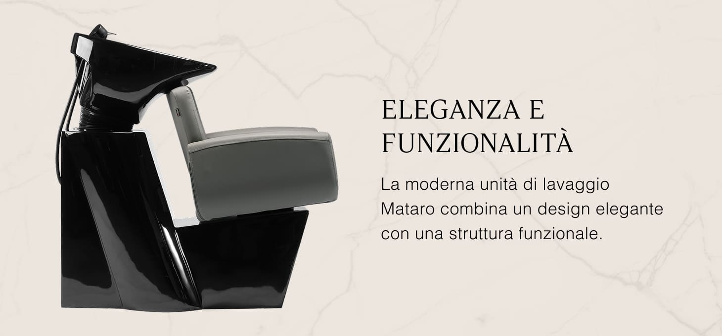 Il lavatesta Gabbiano Mataro unisce funzionalità, comfort e design moderno. La poltrona, semplice e minimalista, con un'interessante seduta arrotondata , consente di effettuare comodamente i trattamenti di cura e il lavaggio dei capelli. La struttura integrata e la forma ergonomica della seduta assicurano il comfort del cliente, supportando al contempo il flusso di lavoro del parrucchiere. La forma elegante sottolinea il carattere degli interni, conferendo un aspetto professionale e contemporaneo.