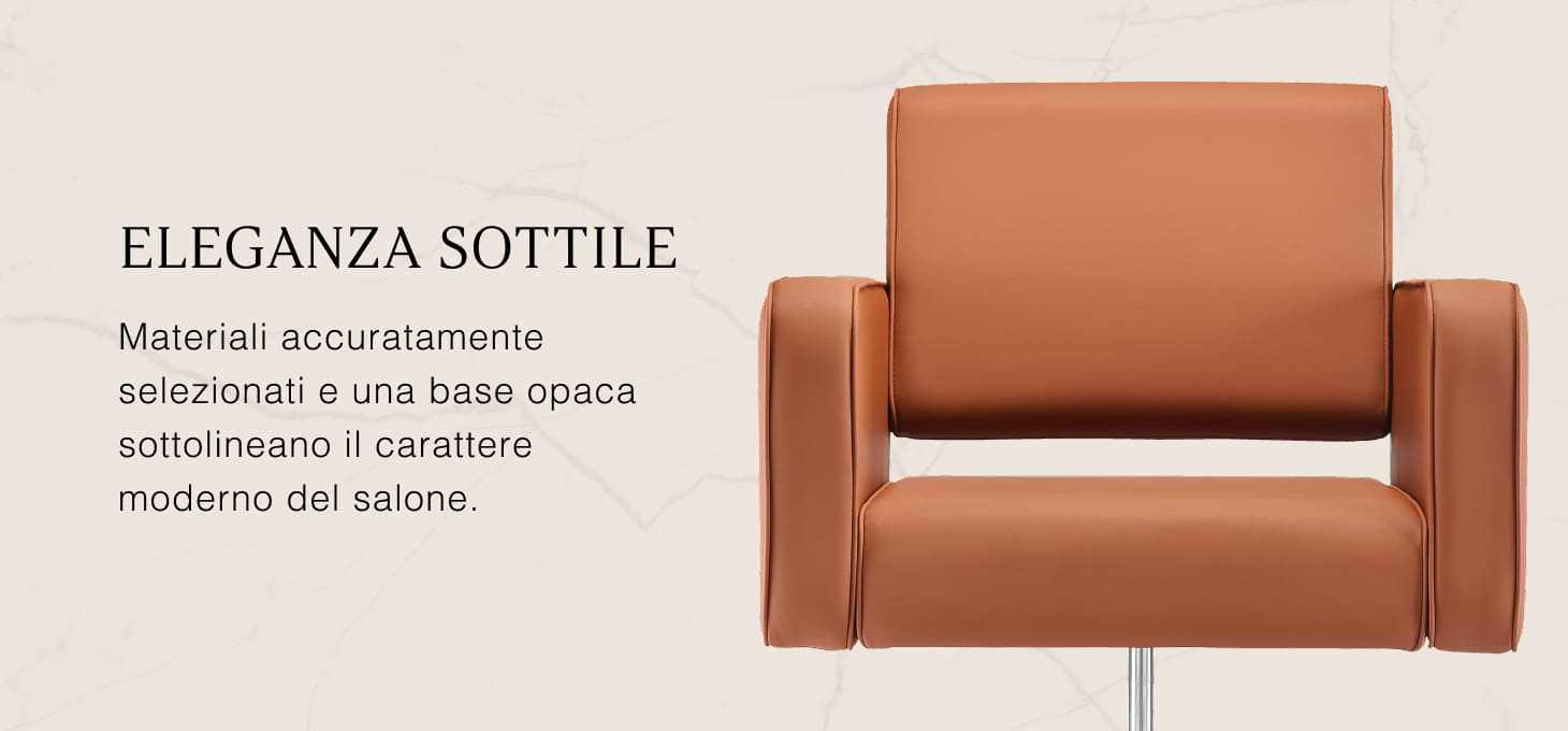 La seduta garantisce il comfort anche durante i trattamenti più lunghi. I braccioli ergonomici favoriscono la corretta postura della cliente, assicurando il comfort e facilitando tagli e styling precisi. Il meccanismo di rotazione completa offre maggiore mobilità e libertà di movimento, rendendo il lavoro del parrucchiere più fluido, efficiente e meno stressante. Un'ulteriore comodità è rappresentata dalla pratica apertura tra lo schienale e la seduta, che facilita la pulizia e la rimozione rapida dei capelli dalle zone più difficili da raggiungere. Ciò consente di preparare la postazione in modo efficiente e igienico per il cliente successivo.