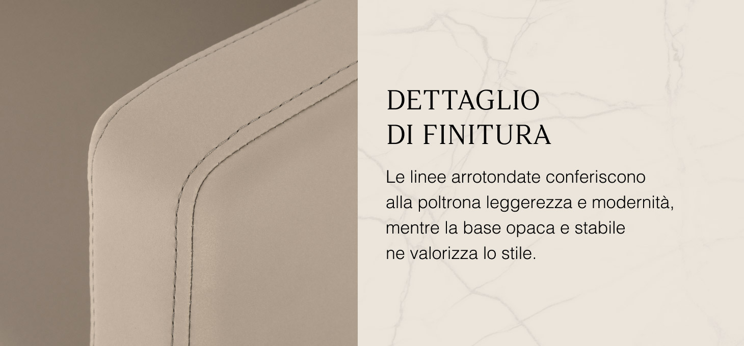 Le linee arrotondate della poltrona conferiscono leggerezza e un'estetica moderna, mentre la base stabile e quadrata in nero opaco ne sottolinea l'aspetto elegante. La pelle sintetica piacevole al tatto nei toni del grigio e beige garantisce comfort anche durante trattamenti lunghi, oltre a garantire durata, resistenza all'umidità e facilità di pulizia. La poltrona si adatta sia agli arredi moderni che a quelli classici, sottolineando l'immagine professionale del salone.