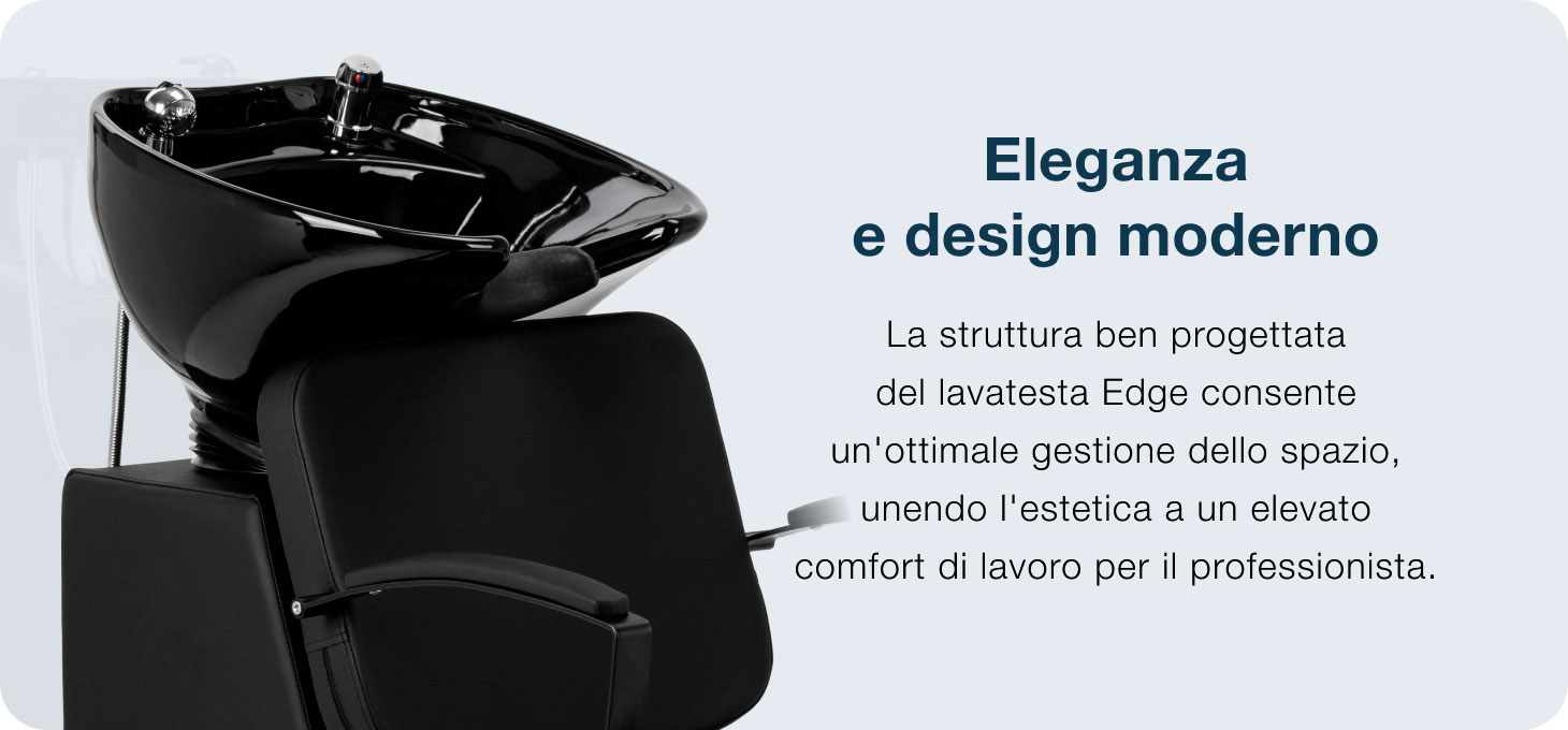 Il lavaggio minimalista Hair System Edge è un'attrezzatura funzionale che consente di eseguire un'ampia gamma di trattamenti per la cura dei capelli. La forma accuratamente progettata consente di sfruttare in modo ottimale lo spazio del salone. La struttura integrata garantisce un elevato comfort sia ai parrucchieri che ai clienti, mentre i colori classici e sobri nelle tonalità del nero, completati da dettagli decorativi, sottolineano il carattere elegante e moderno del mobile.