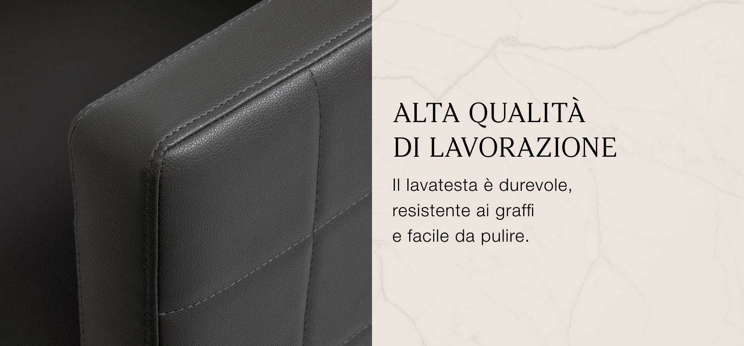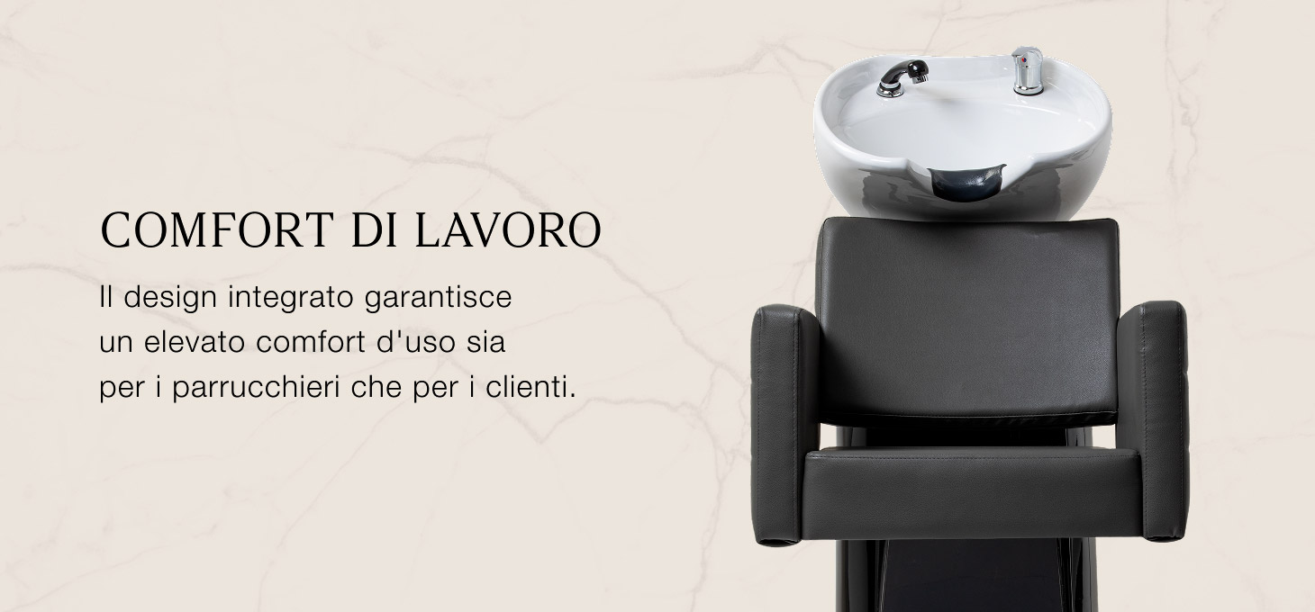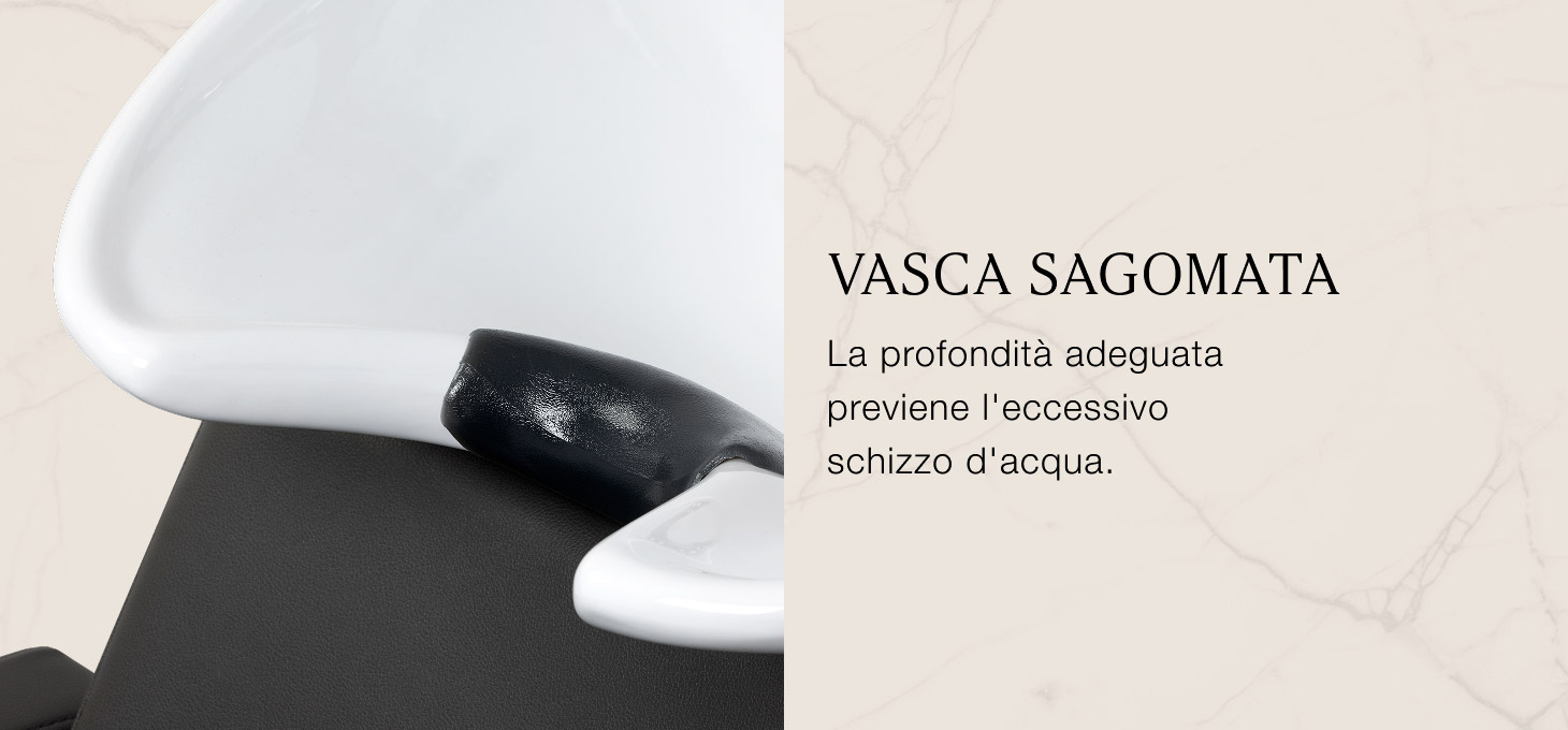 La profonda ciotola in ceramica nei toni del bianco riduce efficacemente gli schizzi di acqua e dei preparati utilizzati durante i trattamenti. Ciò favorisce un'esecuzione confortevole e precisa dei vari servizi di parrucchiere. La struttura mobile della ciotola consente di regolare facilmente l'angolo di inclinazione in base alle esigenze individuali. Il materiale utilizzato è durevole, resistente allo scolorimento e ai graffi e facile da mantenere pulito. Il collare opportunamente profilato offre un comodo appoggio per la testa durante il lavaggio, mentre il confortevole rivestimento in plastica nei toni del nero elimina la sensazione di freddezza della superficie ceramica.