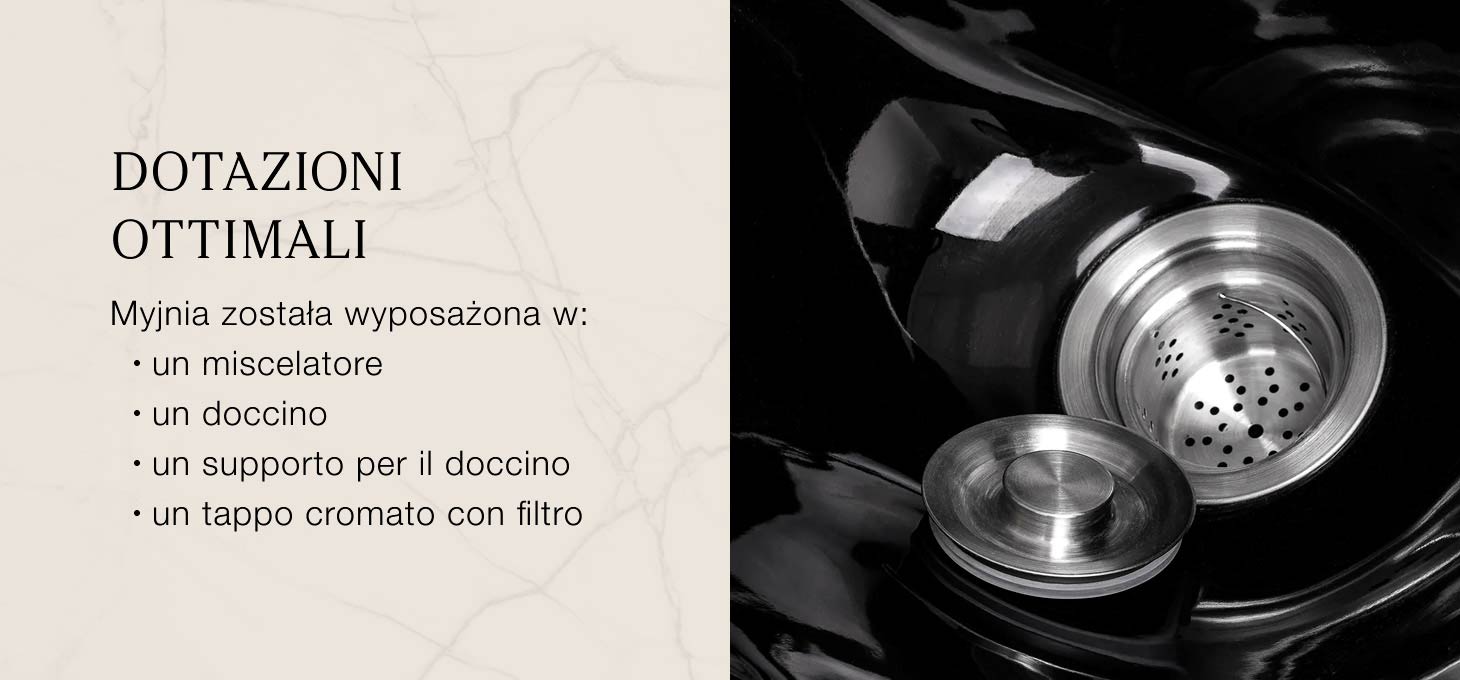 L'unità di lavaggio è dotata di un miscelatore per una comoda erogazione di acqua calda e fredda e una facile regolazione della temperatura in base alle esigenze del cliente. Un pratico alloggiamento per la cornetta della doccia facilita l'organizzazione del lavoro e l'ordine della postazione. Il tappo con filtro consente di controllare il flusso dell'acqua, mantenendo elevati standard igienici. Il set comprende la rubinetteria completa: rubinetto, doccetta e tubi flessibili dedicati, che costituiscono un insieme pronto per l'installazione. L'attacco dell'acqua è stato posizionato all'interno della base dell'unità di lavaggio, consentendo di nascondere esteticamente l'installazione. Nella base della lavatrice sono stati ricavati dei punti per avvitarla al suolo: questa soluzione aumenta la stabilità dell'intera struttura. La combinazione di soluzioni funzionali e dettagli ben studiati si traduce nel comfort del lavoro quotidiano nel salone da parrucchiere.