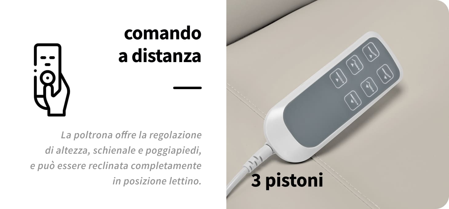 | Attributi | Elettrico, Telecomando, Regolazione del poggiatesta, Regolazione del poggiapiedi, Regolazione dello schienale, Regolazione dell'altezza, Senza ruote, 3 attuatori, Ecopelle |