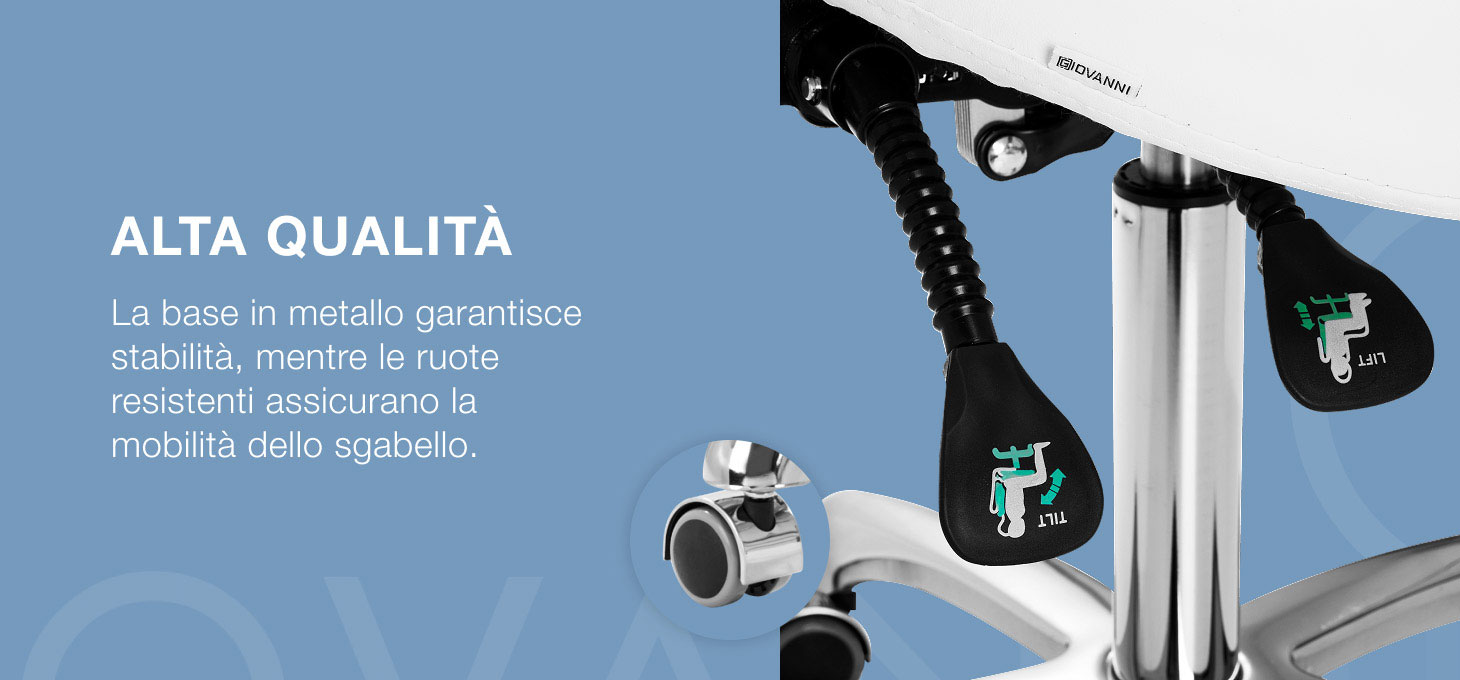 Il pratico sgabello cosmetico Giovanni 1004, con seduta e schienale ergonomici, è ideale per gli interventi professionali. L'appropriata profilatura consente di eseguire comodamente i servizi. L'elegante sedia assicura il comfort di chi esegue i trattamenti.